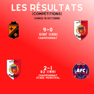 Les résultats du week end (15:/16 octobre)